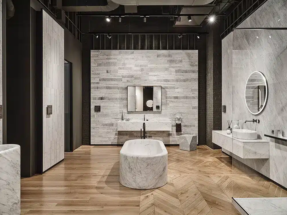 Salvatori, the award-winning Italian design company specializing in natural stone, announces the grand opening of its first North American flagship showroom and boutique at 102 Wooster Street, the epicenter of New York City’s luxury fashion district. Designed by international design studio Yabu Pushelburg, Salvatori sought to create a bespoke design destination that would introduce North America to its ‘Total Look’ design capabilities, encompassing innovative textural surfaces, sculptural bathroom products, and contemporary home décor pieces, all crafted from beautiful natural Italian stone. The new showroom will serve as headquarters for Salvatori’s US-based team, providing customers and designers with unparalleled access to the brand’s bespoke designs and services. The New York showroom marks the brand’s third standalone global destination, following Milan and London.