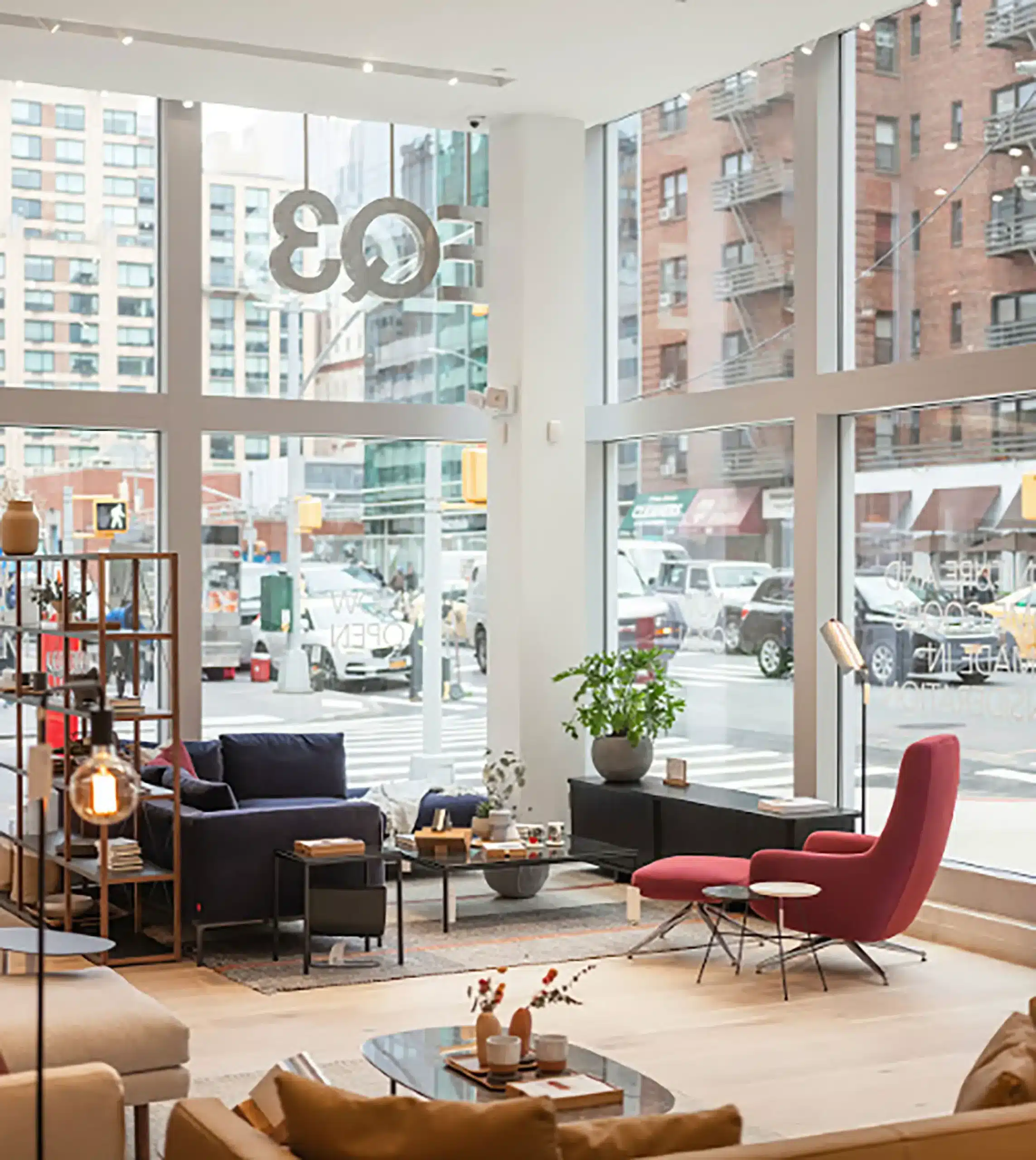 Modern furniture specialist EQ3 has unveiled its glass and steel flagship store in the heart of the City that Never Sleeps’ furniture district, proudly proclaiming it is Canadian by Design and promising to make a distinctive impression with a community made up of some of the toughest consumers in North America. The store itself, which covers three stories totaling approximately 11,000 square feet, was designed in-house from the ground up by EQ3’s former creative director Thom Fougère as a “light-filled jewel box” that would capture the attention of passersby walking through the neighborhood.