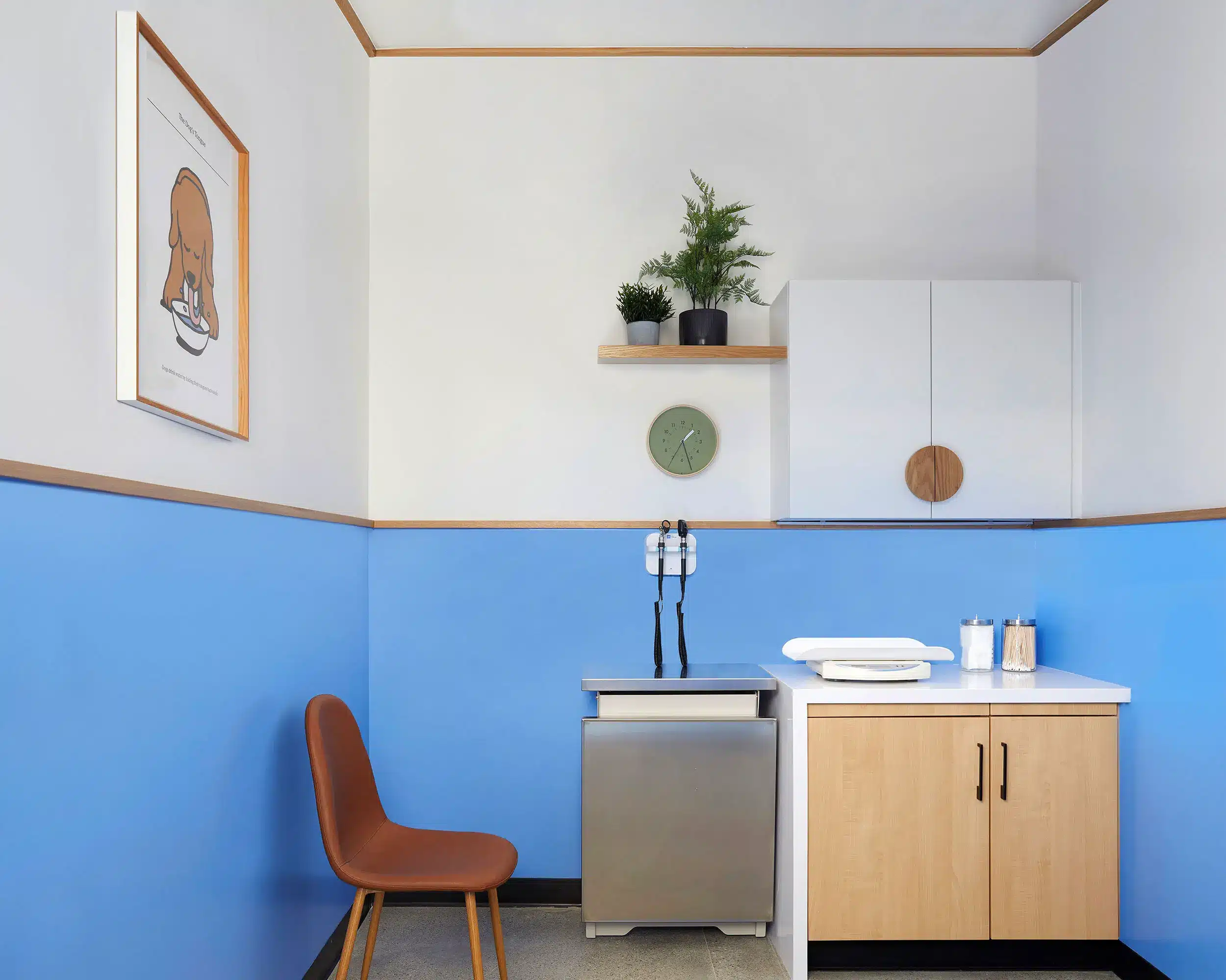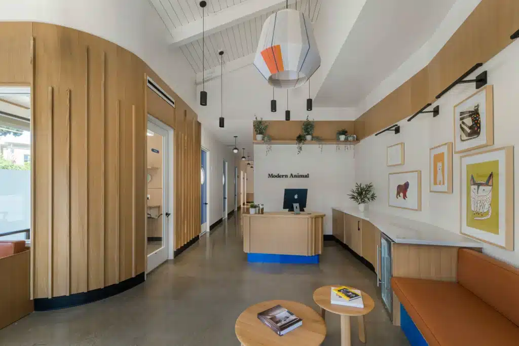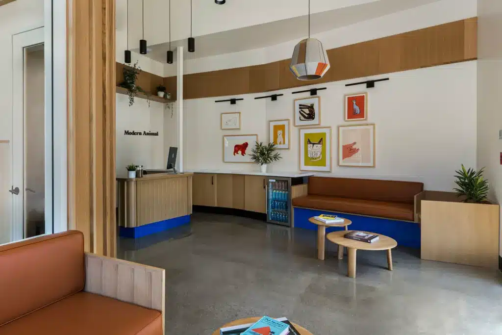 The Modern Animal Walnut Creek Clinic is a nearly 5,000-square-foot, state-of-the-art veterinary facility located in the heart of Walnut Creek’s downtown district. The project involved a complete renovation of a former bank, preserving only the original vault—now creatively transformed into the Dental Room. Featuring ten exam rooms, including specialized spaces for X-rays, surgery, and dental care, the clinic blends functionality with thoughtful design. A vaulted wood ceiling welcomes visitors into a bright, elegant lobby, while the back-of-house includes 30 ventilated glass enclosures, a full kitchen breakroom, and six large animal enclosures with a wash area. Advanced systems like in-wall medical gas, high-tech fire alarms, and sprinklers ensure the clinic operates safely and efficiently, reflecting Modern Animal’s commitment to innovation, comfort, and quality care.